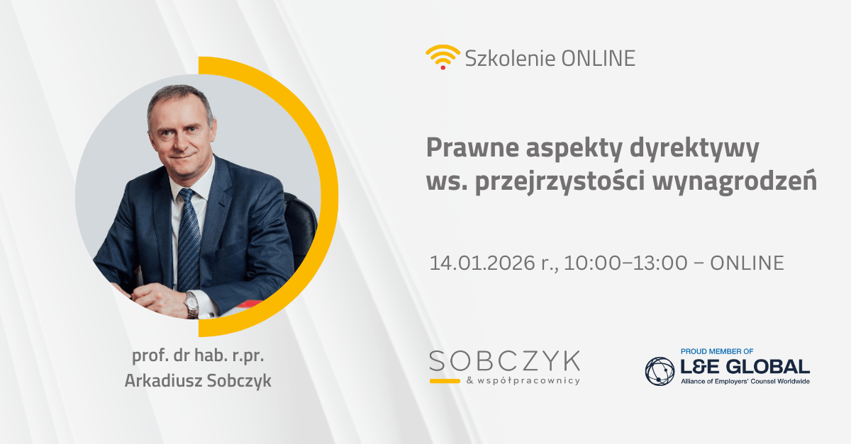 Zapisując się do Newslettera niniejszym wyrażasz zgodę na wykorzystanie Twojego adresu e-mail w celu wysyłki Newslettera oraz przesyłania informacji handlowej, w tym marketingu bezpośredniego, w zakresie usług oferowanych przez Kancelarię A. Sobczyk i Współpracownicy z siedzibą w Krakowie, nowych produktów, płatnych oraz bezpłatnych szkoleń i webinarów (na podstawie art 398 ust. 1 ustawy z dnia 12 lipca 2024 r. Prawo komunikacji elektronicznej).