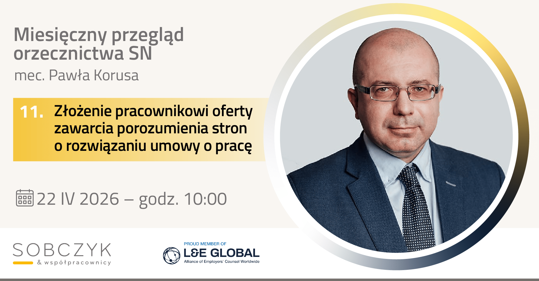 Miesięczny przegląd orzecznictwa Sądu Najwyższego Pana Mecenasa Pawła Korusa – dopuszczalność złożenia pracownikowi oferty zawarcia porozumienia stron o rozwiązaniu umowy o pracę